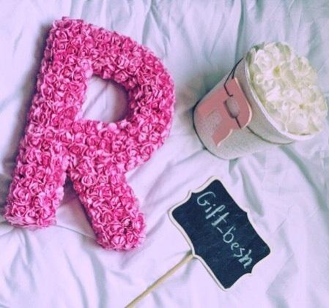 حرف R مزخرف بالورد